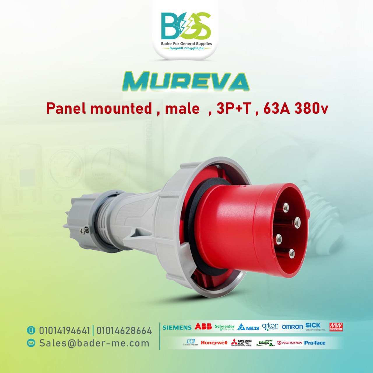 Panel mounted , male , 3P+T , 63A , 380v