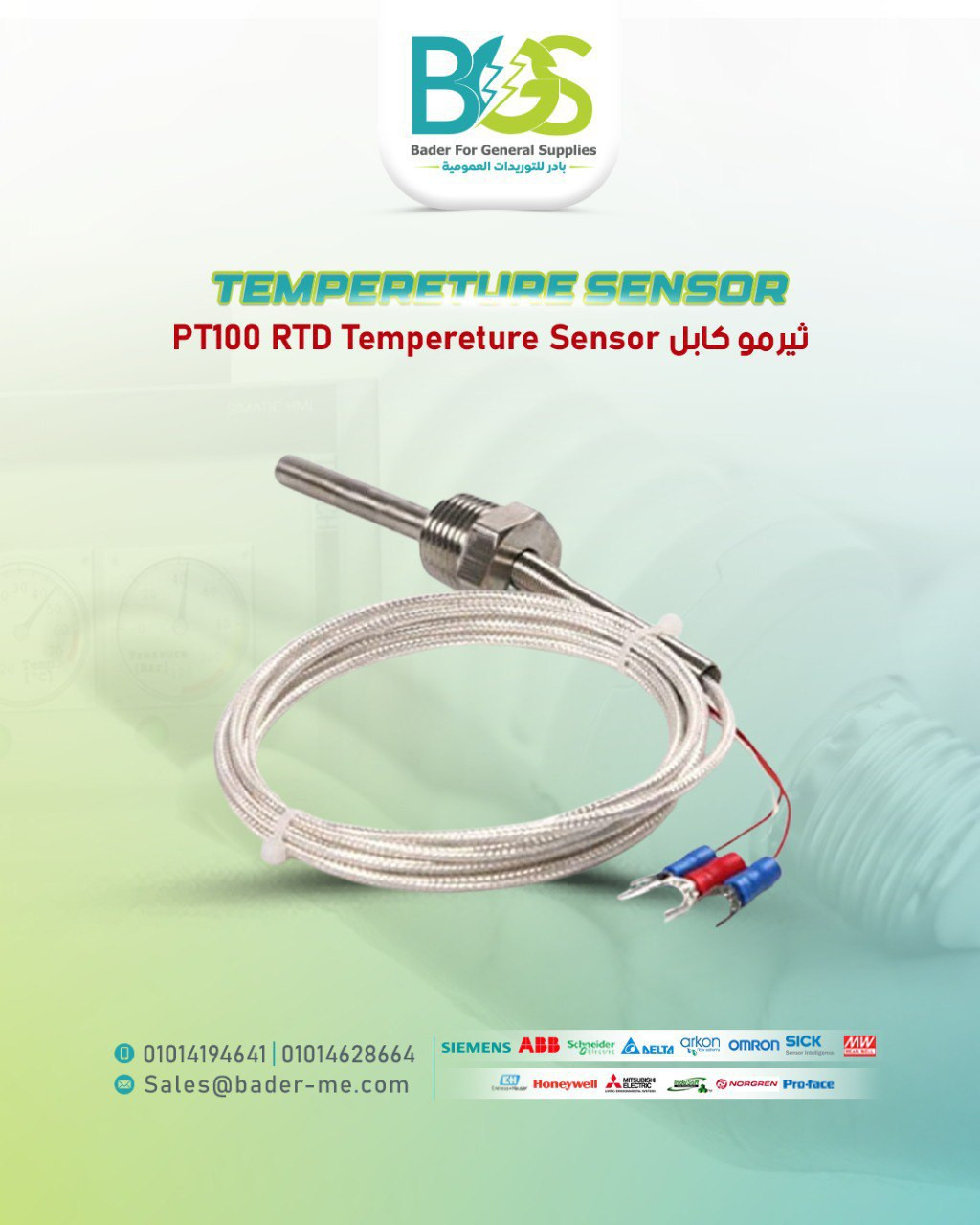 PT100 RTD tempereture sensor حساس بالهد والترانسميتر